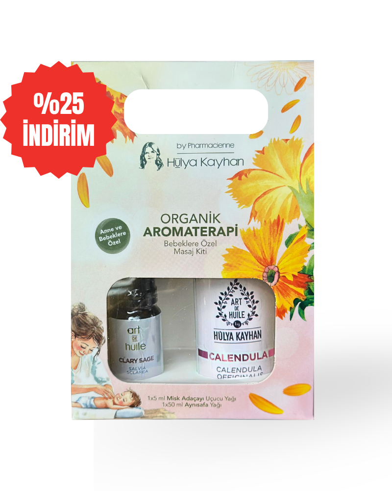 • 2–6 Ay: 1 yemek kaşığı Aynısefa yağı + 3–4 damla Misk Adaçayı Uçucu Yağı